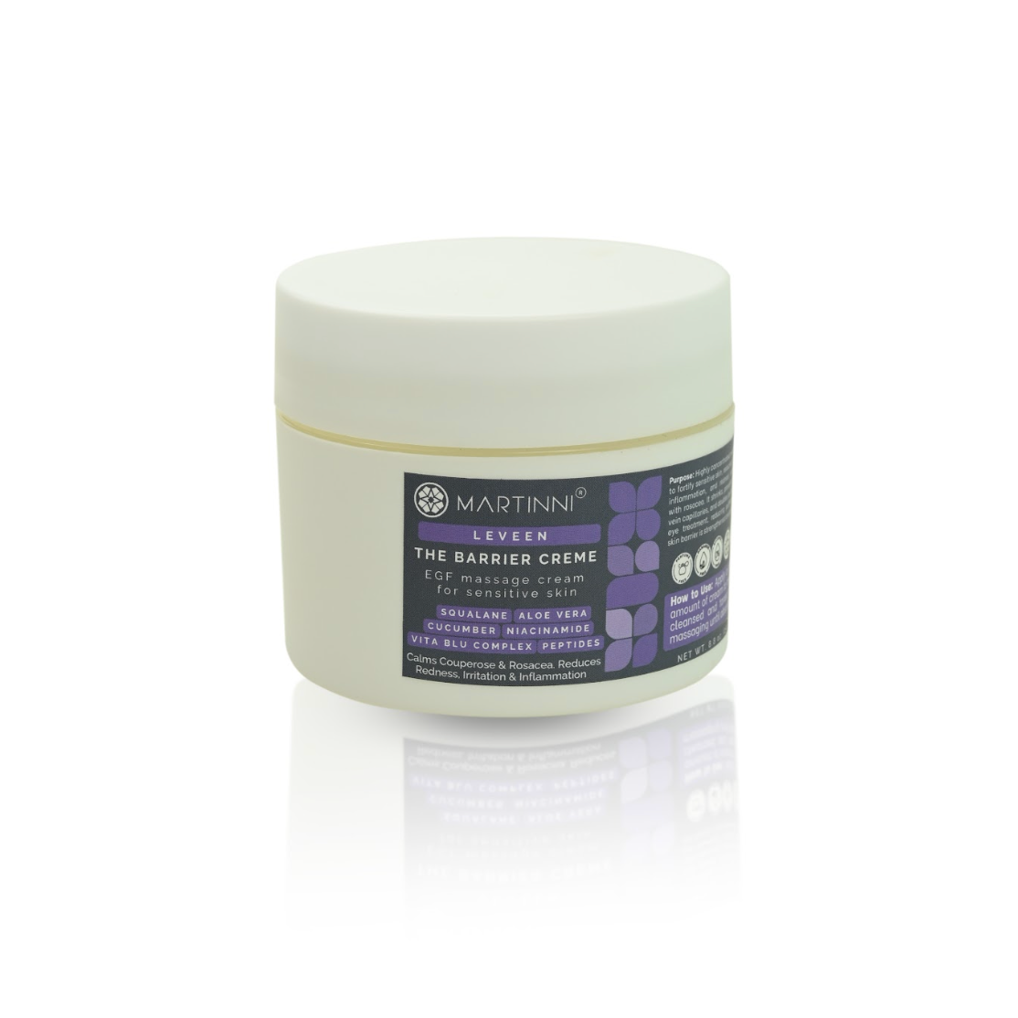 Highly concentrated moisturizers to fortify sensitive skin, reducing flushing, inflammation, and redness associated with rosacea. It shrinks, prevents spidervein capillaries, and doubles as an under-eye treatment, reducing puffiness. The skin barrier is strengthened and protected.